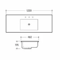 The 120cm Ceramic Vanity Top measures 1200x460x195mm in dimension.