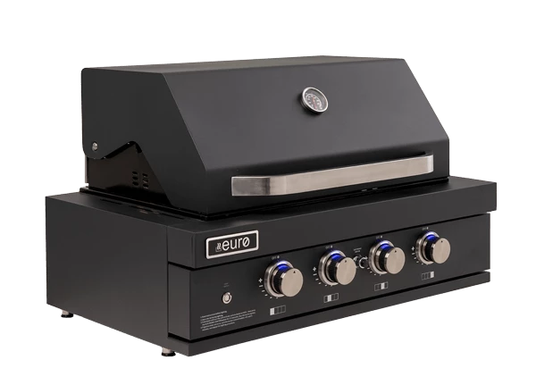 The 4 Burner Black Built-In BBQ measures 90cm wide x 56.4cm high x 58.180cm deep. It weighs 52kg (gross) / 40kg (net).
