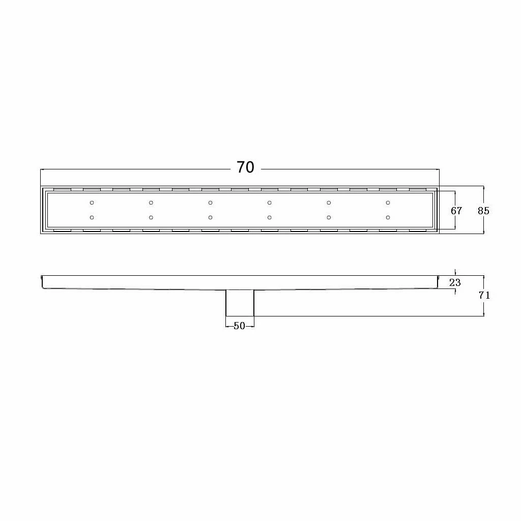 The 70cm Tile Floor Grate is very practical and allows surface water to escape easily from bathroom floors. It features a brilliant design that makes use of a crisp and neat edge. This edge provides a 5mm gap between the surrounding floor tiles, which is double the width of a standard drainage grill. This allows water to escape easier and significantly reduces drain clogging.
