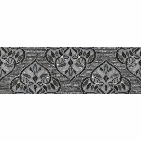 Arles Gris is an attractive feature wall tile that is the ideal choice for modern bathrooms. It boasts a decorative patterned design in shades of grey, black, and silver.
