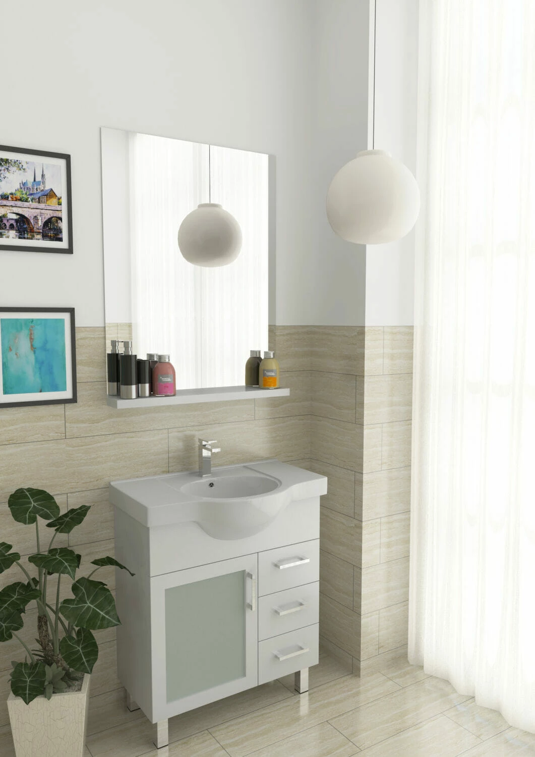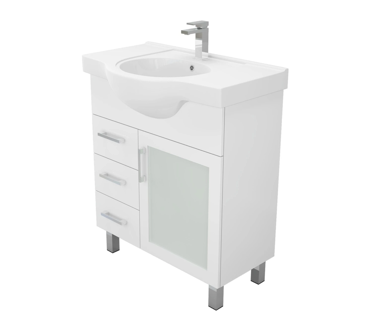 Introducing the Charli Semi Recessed Glass Doors 75cm. This contemporary bathroom vanity has been designed to suit a range of bathroom design styles and features a sleek glass door, high-gloss white finish, and durable chrome handles.