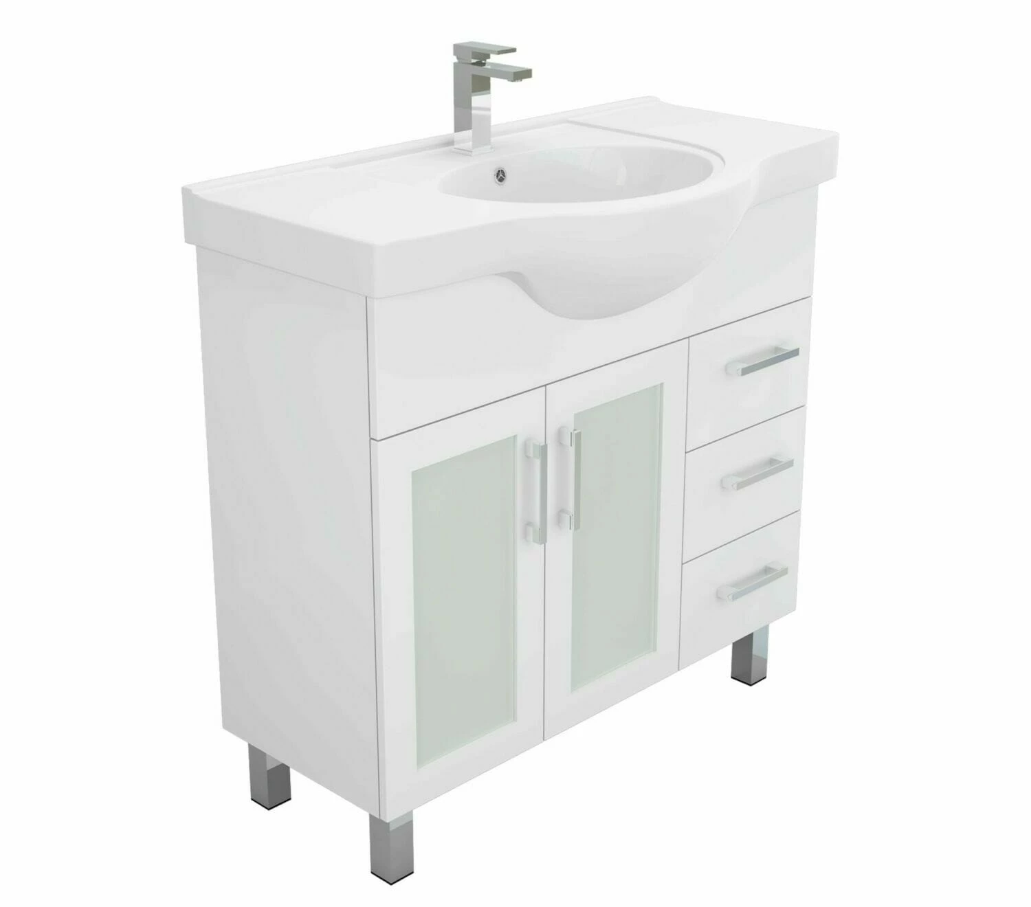 The Charli Semi Recessed vanity features a glossy white 2 Pac painted finish surface, which makes it highly durable. It includes soft-closing drawers and doors for prolonged life and a slim benchtop made out of vitreous china. This bathroom vanity is also equipped with an overflow.