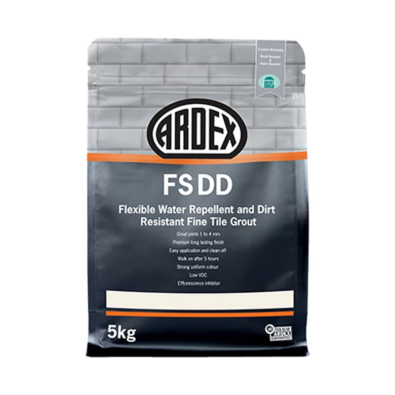 Choose FS-DD Coloured Grout for the greatest contrast or complementing finish. FS-DD Coloured Grout is a cement-based grout that comes in a variety of contemporary colours and is ideal for both wall and floor tile installation.