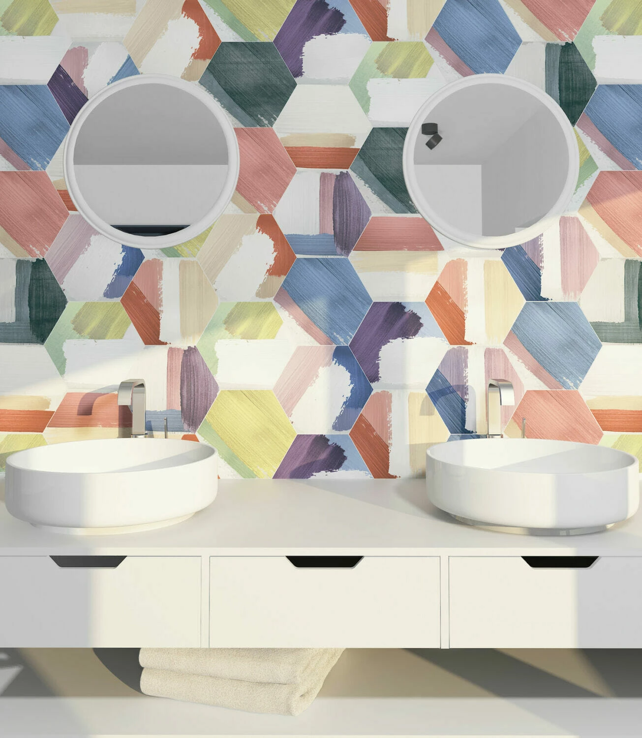 Hexia Rothko is an ideal feature tile for bathrooms, kitchens or any room of a home needing a splash of colour.