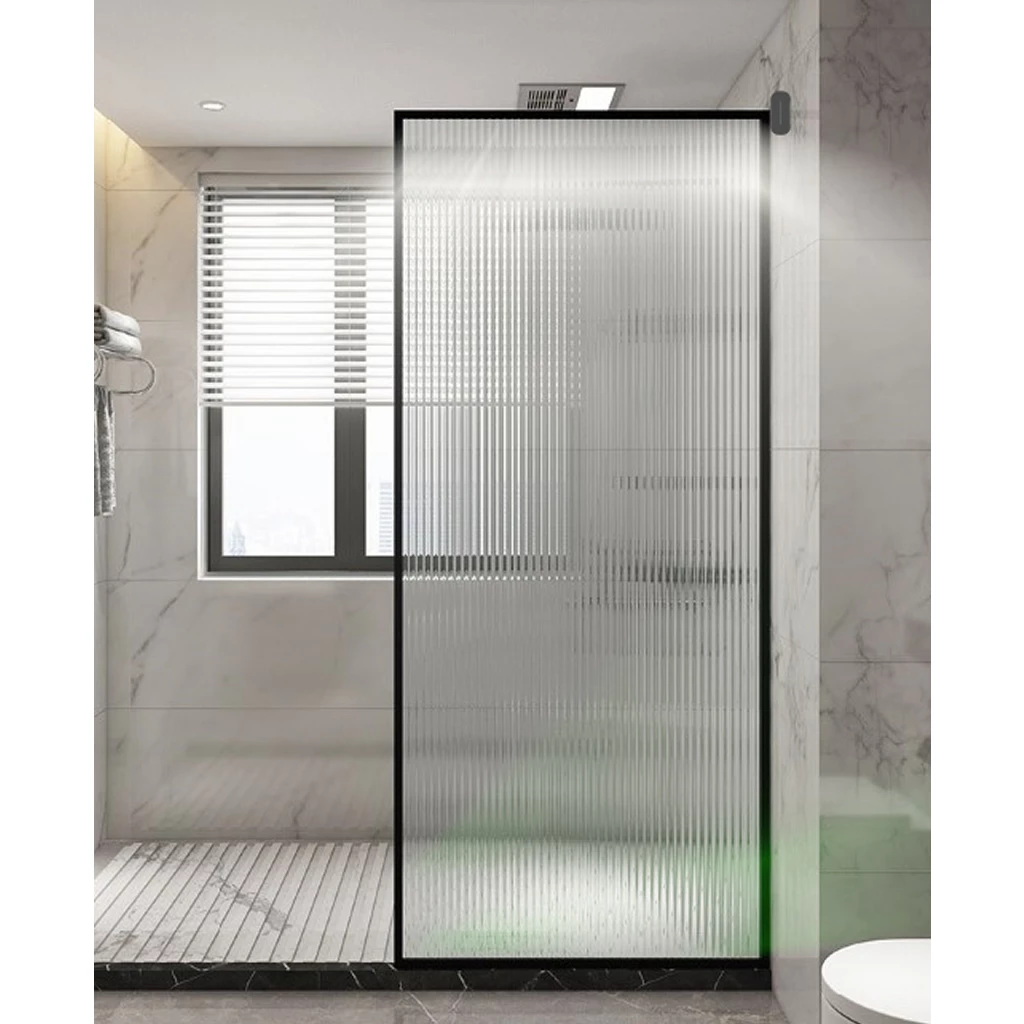 The LED Sensor Fluted Glass Shower Panel is available in black stainless steel or brushed stainless steel finish for an elegant look. It is 900x2000mm and can create different types of shower enclosures, such as corner, alcove, recess, walk-in or flat wall enclosures.