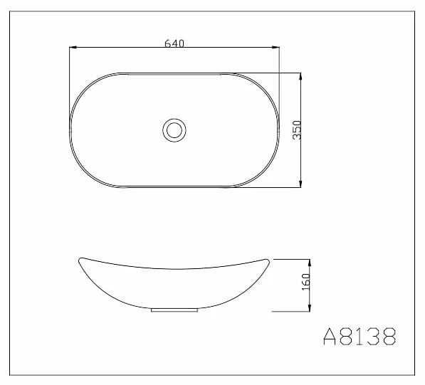 The Matt Black Naples Vessel measures 640mm (W) x 350mm (D) x 160mm (H).