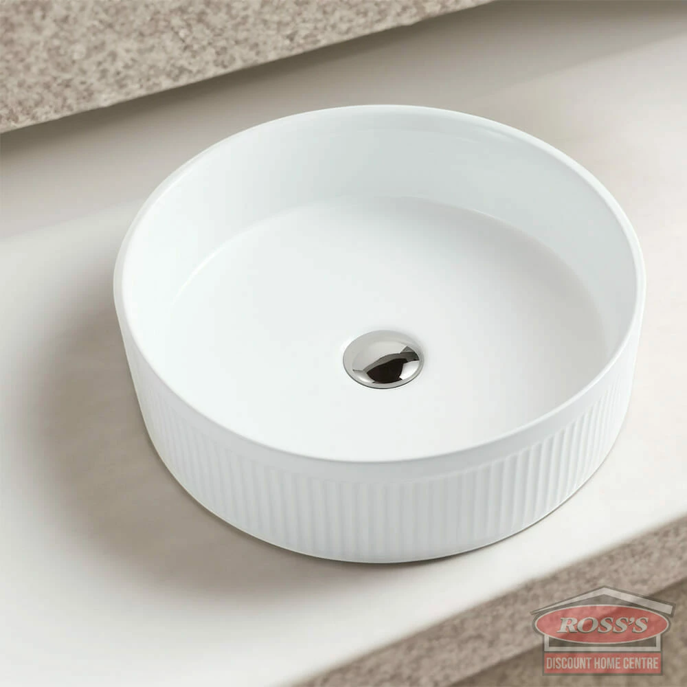 Discover exceptional value for money within Ross’s Discount Home Centre’s basin range. Explore our collection of bathroom basins in Perth and bring home the Olympic Fluted Vessel White Basin to redefine your bathroom’s elegance and functionality.