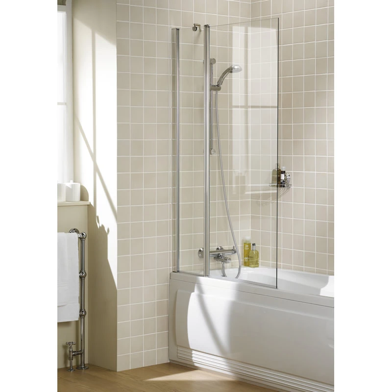 This bath screen stands 1500mm tall and is 945 – 970mm wide. It makes use of a reversible glass panel made of 6mm toughened safety glass, which is coated with AllClear. AllClear’s advanced technology produces a shield that prevents the build-up of shower grime, keeping your shower screen in pristine condition longer. The glass panel is also supported by an elegant frame in a polished silver finish.