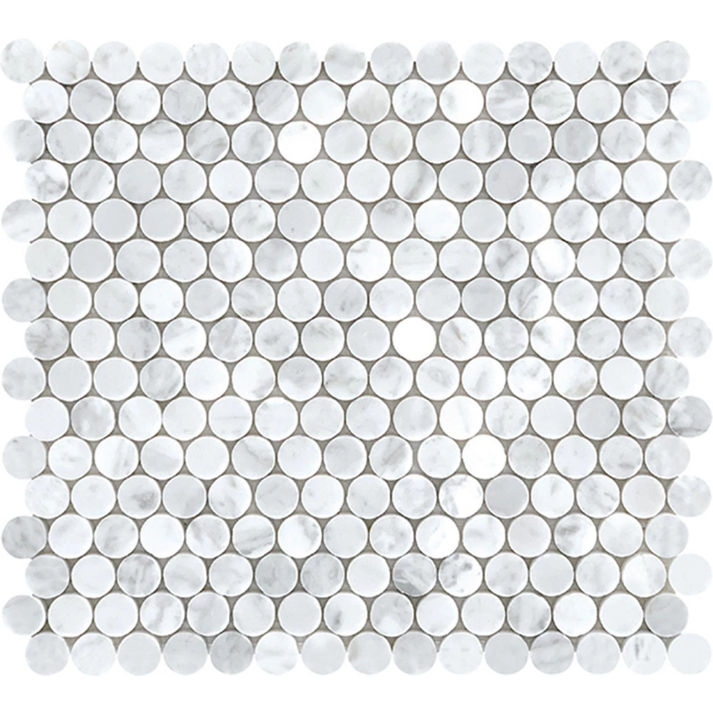 The natural beauty of marble is on full display in the Tuscany Cararra Penny Round mosaic tile. From the popular Tuscany Mosaic range, Tuscany Cararra Penny Round is the epitome of tile trends. The timeless style of marble paired with the on-trend round penny design is a match made in heaven.