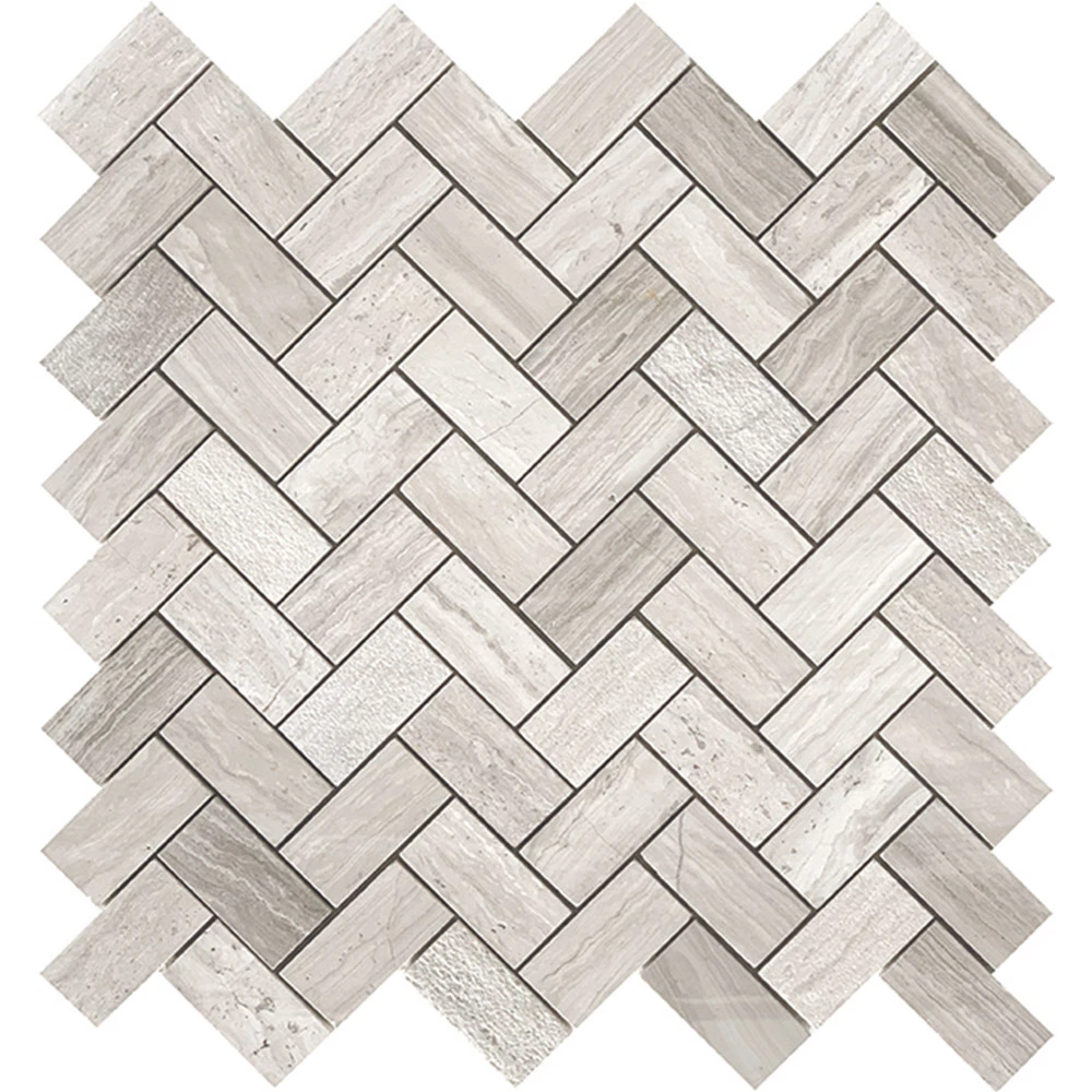Design a killer kitchen or bathroom by choosing the Tuscany Wood Light Grey Short Herringbone mosaic as your feature tile. Tuscany Wood Light Grey Short Herringbone is made from genuine marble and displays a herringbone pattern, which is this year’s hottest tile trend.