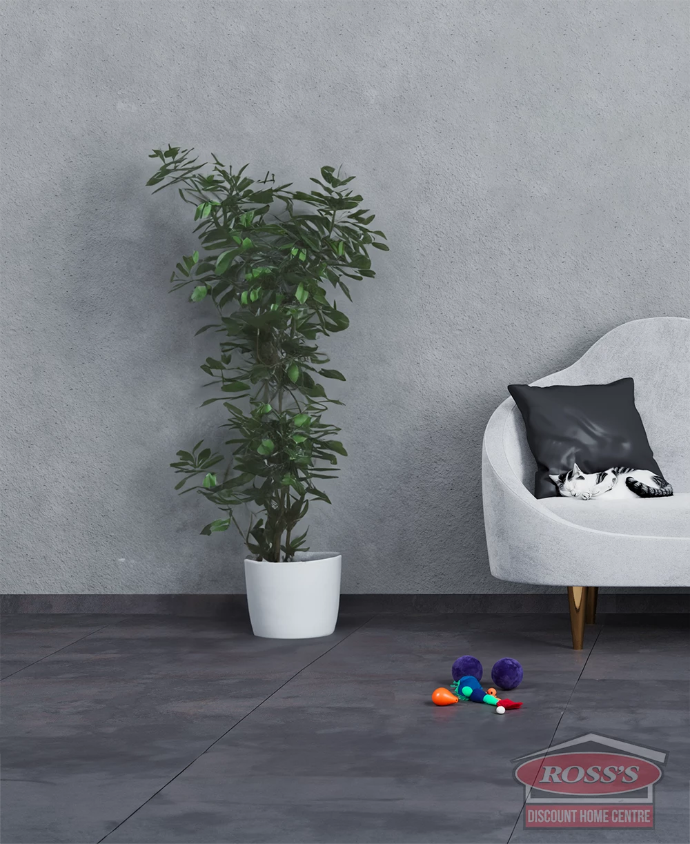 Attractive, contemporary, and budget-friendly is the trendy Vogue Grey tile from Ross’s Discount Home Centre’s Porcelain Tiles range. Boasting a realistic concrete-look design, Vogue Grey is a uber-contemporary tile boasting style, durability and affordability.